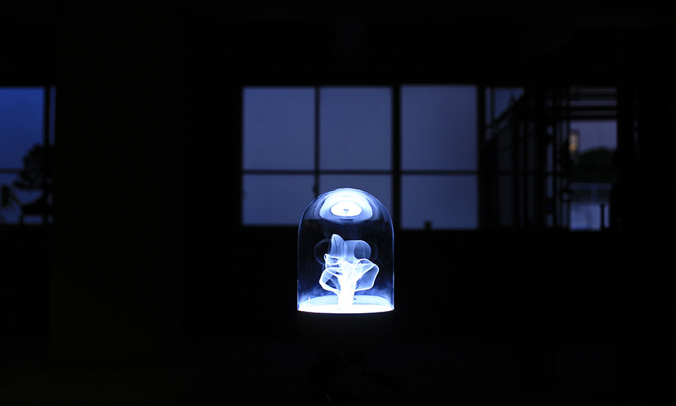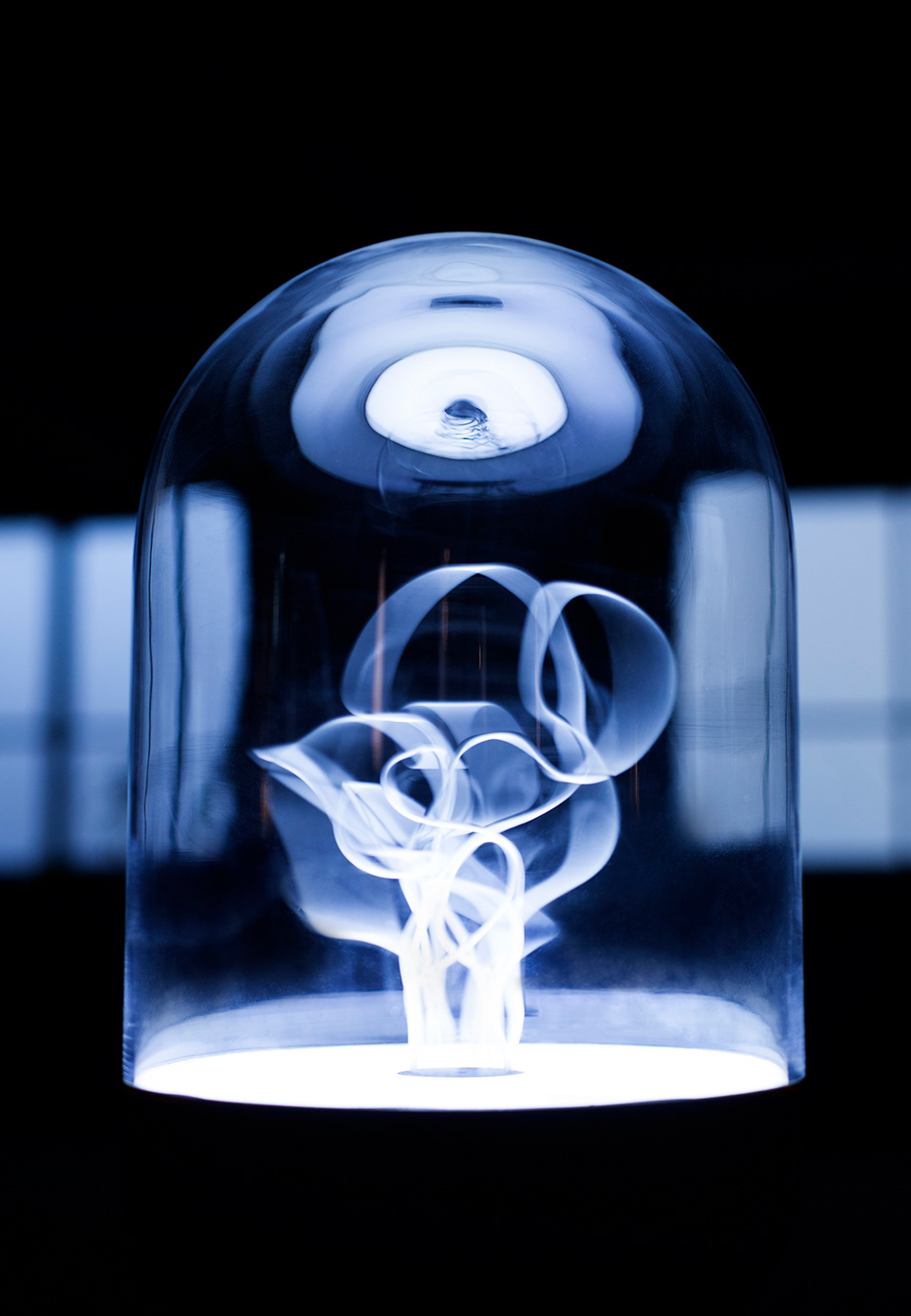 CONTINUUM is a luminous artwork which reconstructs the correlation between light and objects. A collection of wires, arranged in a variety of shapes and sizes, are illuminated and made to whirl, generating an aesthetic form.