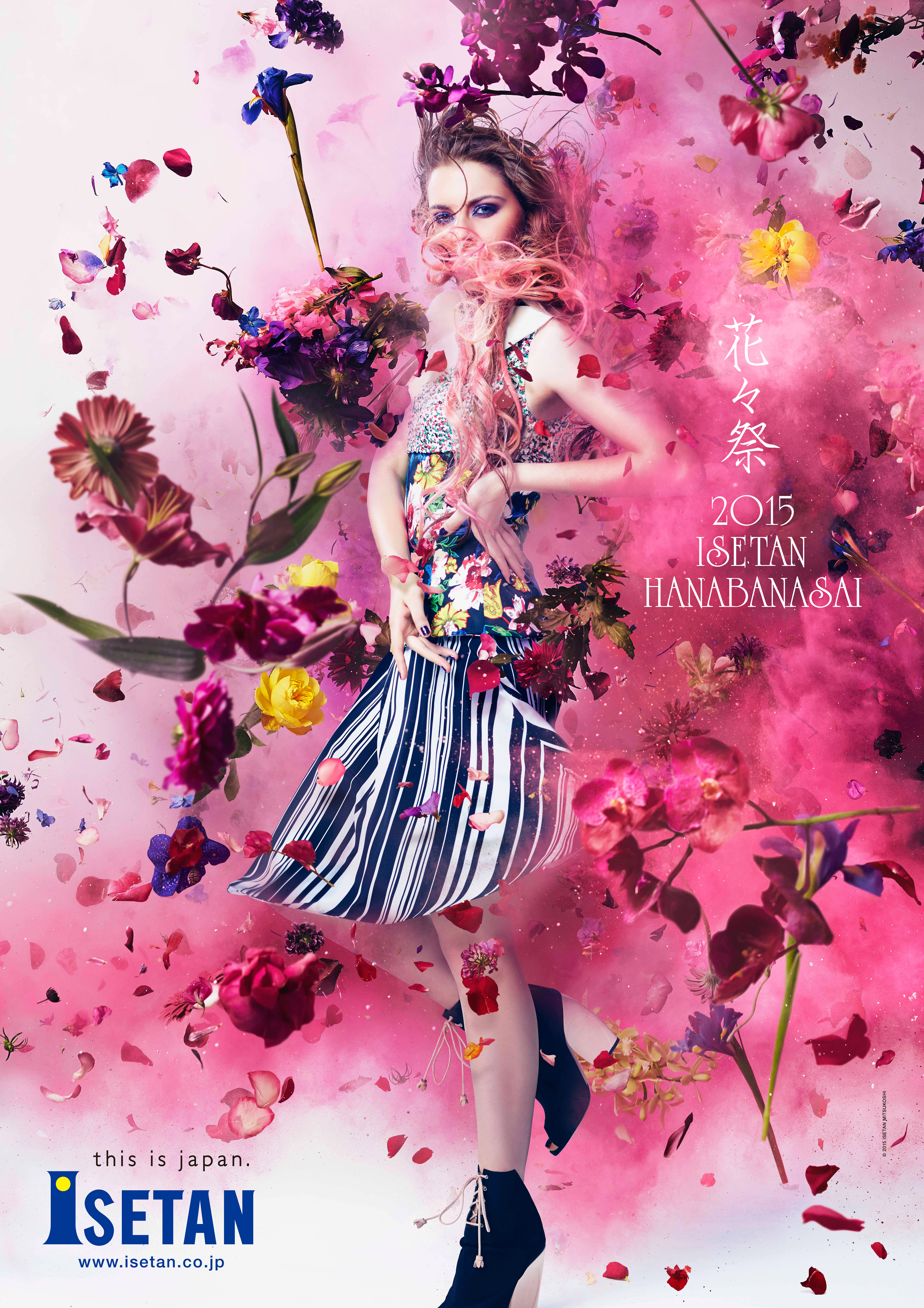 We collaborated with a flower artist Makoto Azuma in the creation and art direction for top Japanese department-store group Mitsukoshi Isetan’s spring campaign “Hanabana-Sai” (meaning “Flower Festival”). Based on a concept of a “celebration of life and being”, the festival features video and visual events created with colored powder, surging flowers and plants. The displays included installations of colored paper which dance and flow like the snowy flurry of cherry blossoms. Accumulating over a five week run, the fluttering storm is designed to be an ever-changing display.
