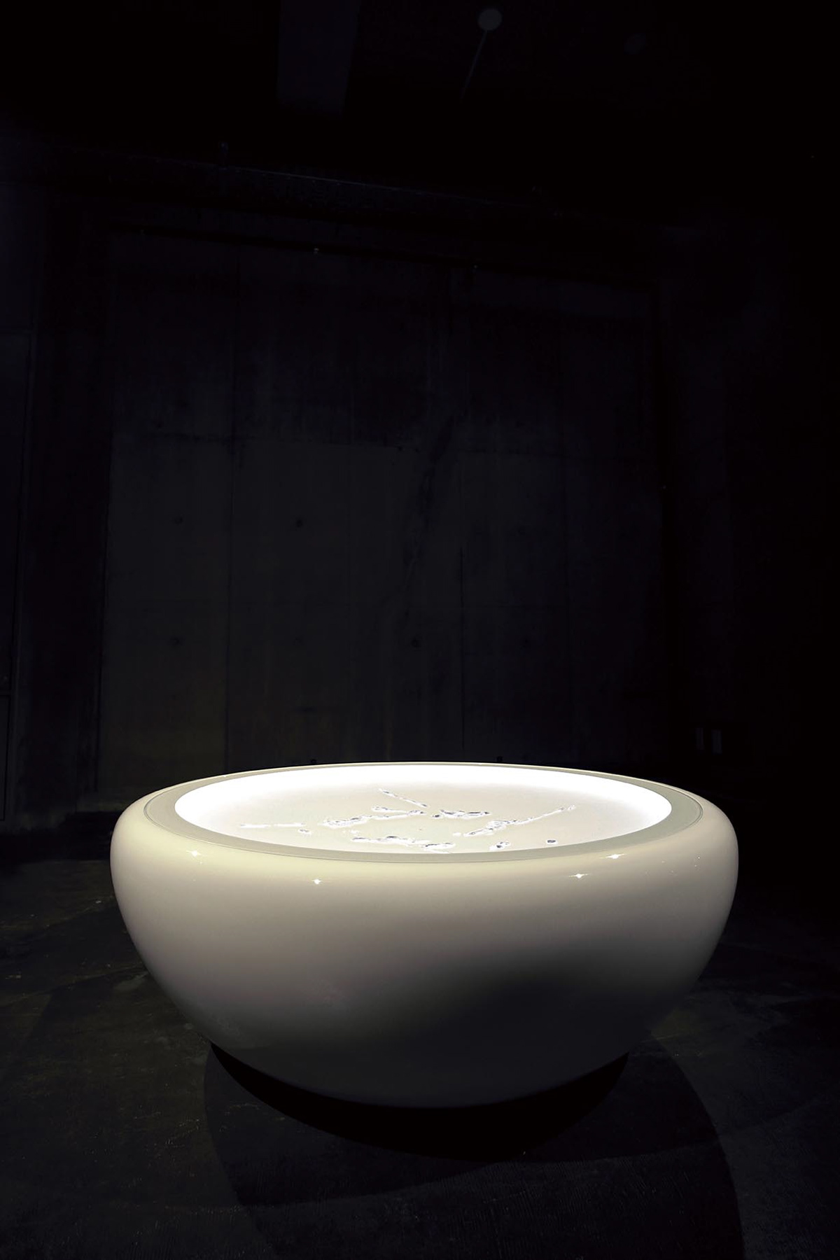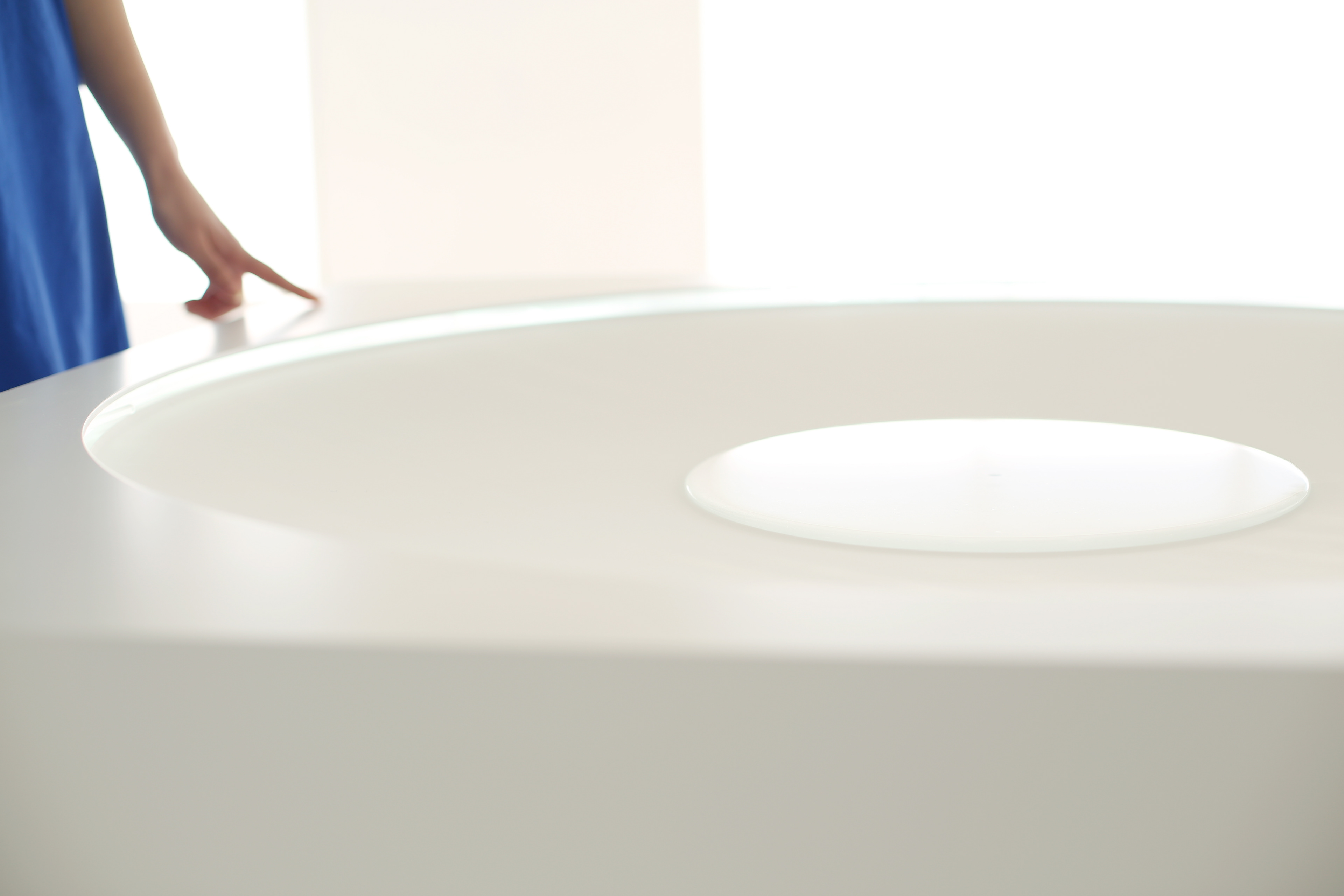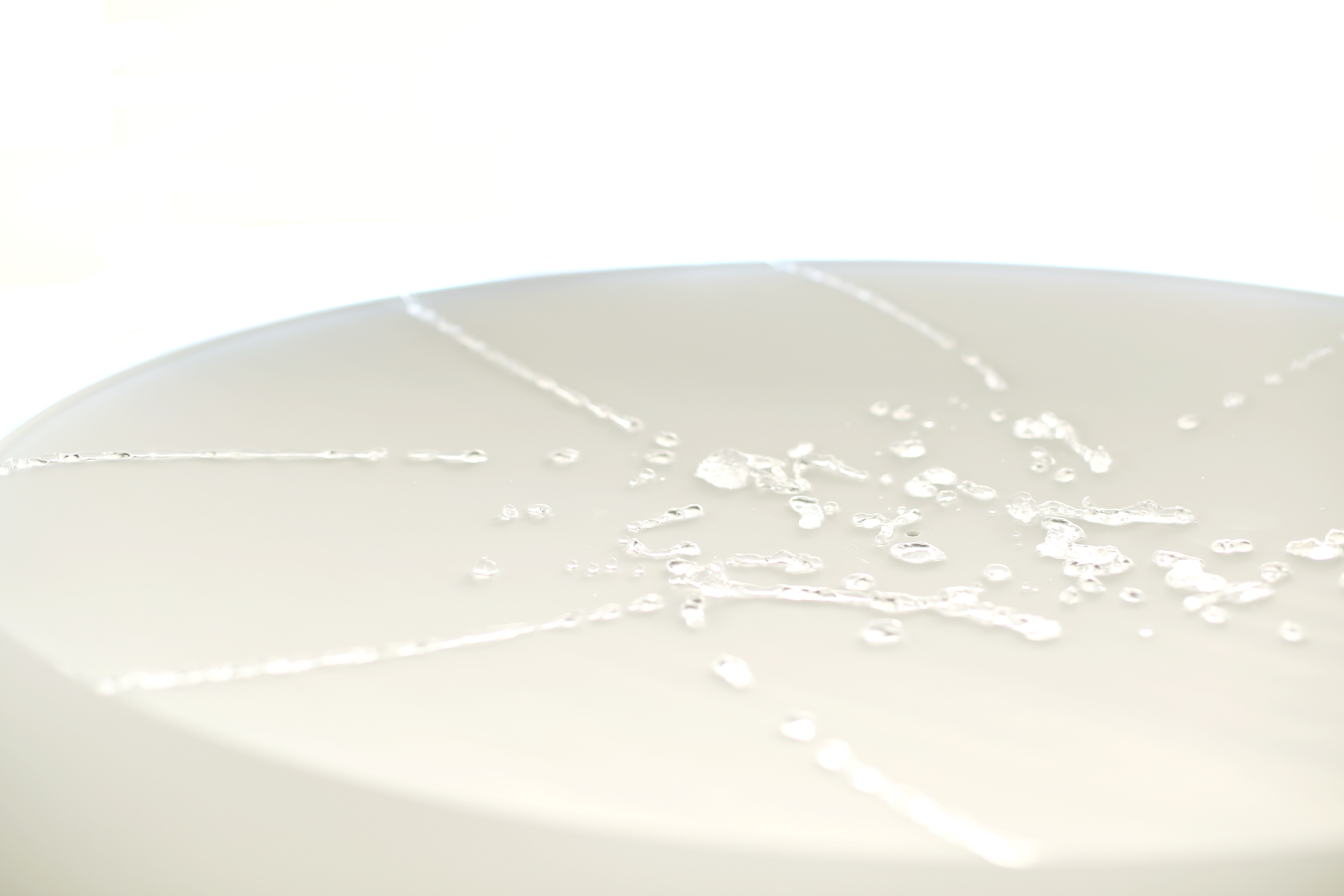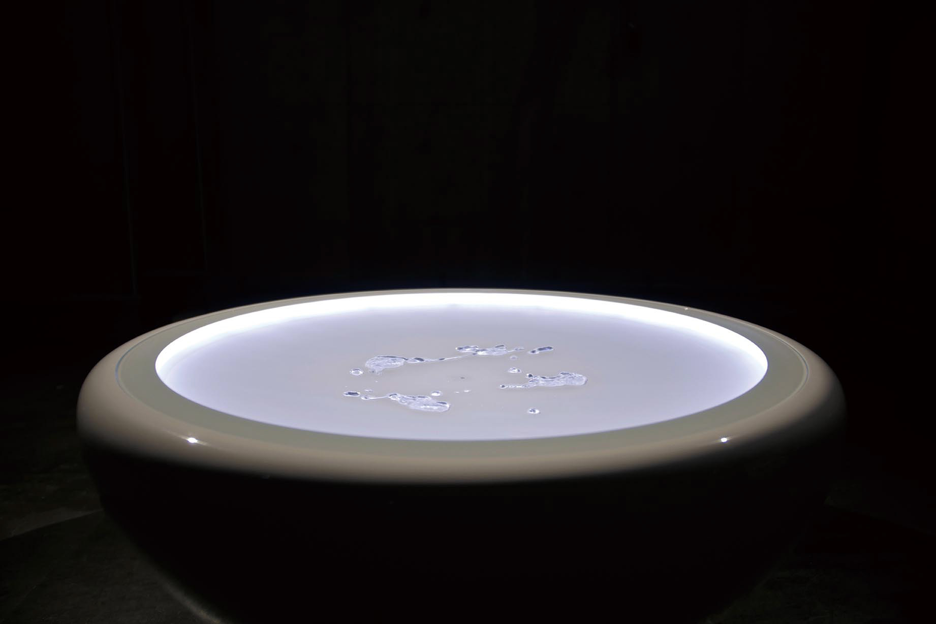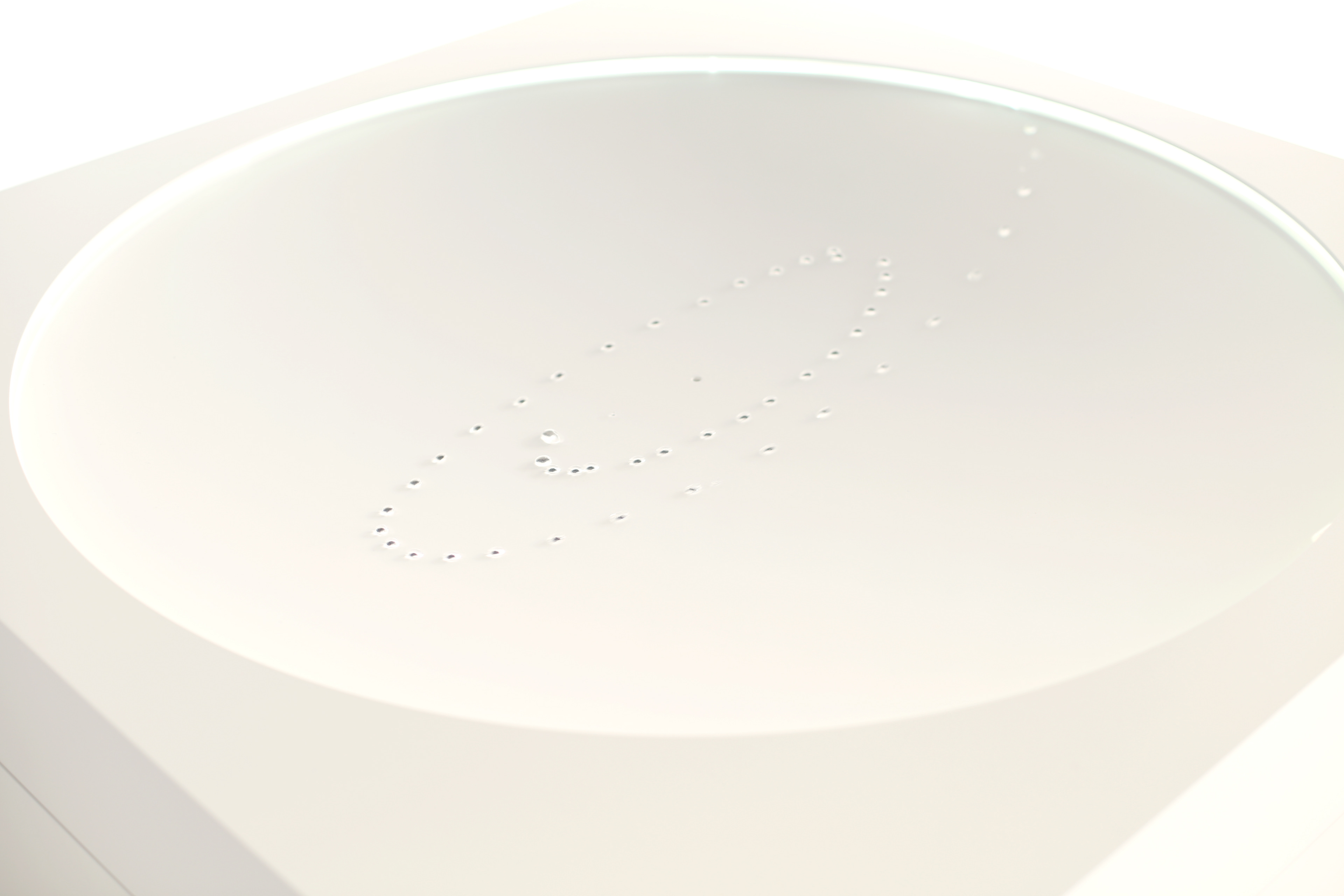 MOMENTum is a contemporary objet d’art which invites the observer to forget about the passage of time. Computer-controlled drops of water trace their way from the edge to the center, creating symmetrical and dynamic patterns.